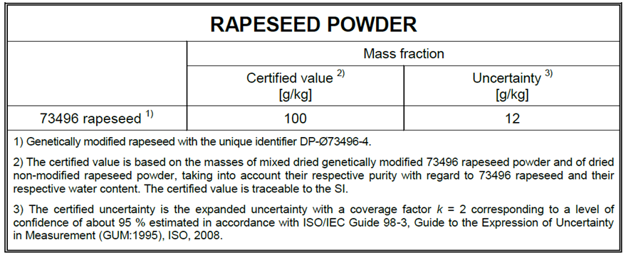 转基因油菜籽73496(10 %GMO)标准物质用于认证的分析方法–通过事件特异性实时聚合酶链式反应验证重量分析制备。