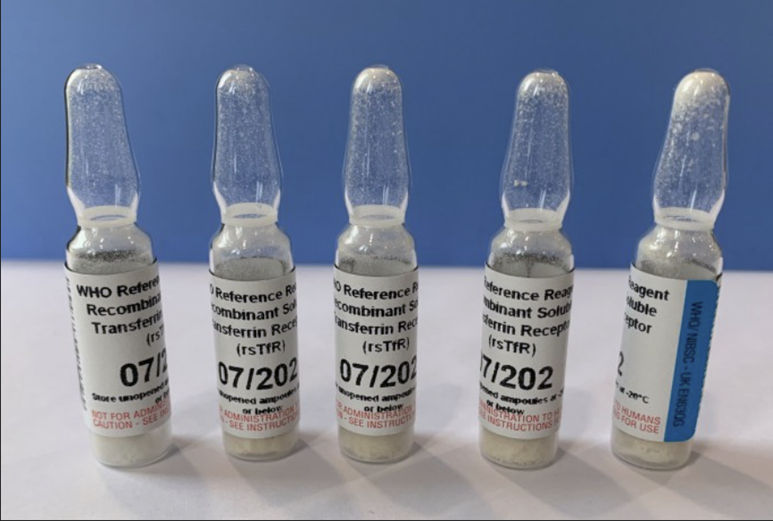 NIBSC07/202重组可溶性转铁蛋白受体标准品生物材料来源:英国。rsTfR由编码残基121-760(野生型TfR的C末端氨基酸)的人TfR基因部分由加州理工学院(CA,USA)制备[6]。rsTfR的N-末端起始位点的选择是基于对胰蛋白酶消化胎盘TfR产生的先前表征的可溶性片段的研究[7]。