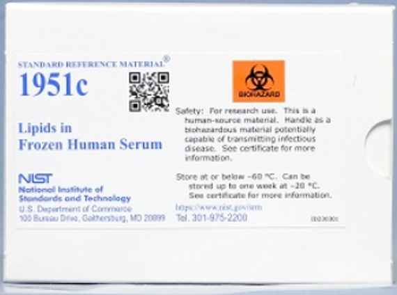 冷冻人血清中的脂质标准品NIST SRM 1951c储存条件:血清冷冻运输(在干冰上),收到后应冷冻储存,直到可以使用。冷冻柜温度为-20°C,可储存长达一周。如果预计储存时间更长,材料应储存在–60°C或以下。SRM不应暴露在阳光或紫外线辐射下。在室温或冰箱温度下储存解冻的材料可能导致分析物浓度的变化。