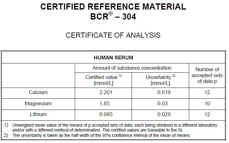 BCR-304人血清中钙,镁,锂标准物质 材料到达后,应在4°C下储存不超过12个月,直到使用为止。