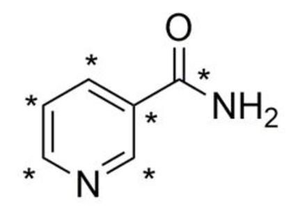 An internal standard suitable for quantitation of nicotinamide levels in LC-MS/MS methods and testing applications including clinical and diagnostic testing or quality control testing of vitamin supplements, fortified foods or pharmaceutical preparations. Nicotinamide is the amide of nicotinic acid.Nicotinamide-13C6 (Vitamin B3-13C6)