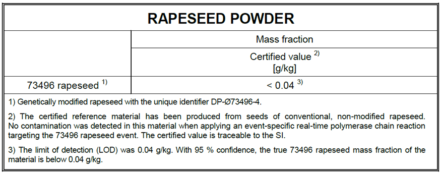 ERM-BF434a 转基因油菜籽73496(0 % GMO)标准物质预期用途–ERM-BF434a只能用于食品和饲料中转基因73496油菜籽的鉴定和定量方法的校准或质量控制。干燥的CRM粉末具有吸湿性。