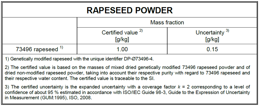ERM-BF434c用于认证的分析方法–通过事件特异性实时聚合酶链式反应验证重量分析制备。/73496油菜籽(标称转基因为0.1%)/转基因油菜籽73496 (0.1%GMO)标准品