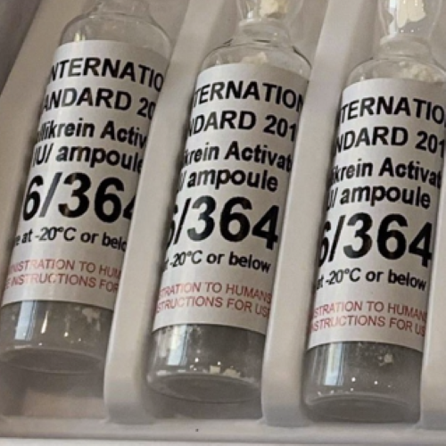 前激肽释放酶激活剂国际标准物质PKA生物活性 每安瓿30 IU PKA。当在1毫升蒸馏水中重新配制时,每个安瓿含有30 IU/ml的PKA。冻干塞子的完全溶解可能需要长达30分钟的时间,并且应注意确保所有固体材料都已完全溶解。轻轻旋转可获得最佳效果。应避免剧烈混合或涡流,因为这会导致起泡,导致安瓿内容物不完全溶解。一旦复原,PKA溶液应储存在冰上,并在1天内使用。NIBSC不能保证在较长时间内保持稳定的单位数,如果溶液要等分和储存,用户应在自己的条件下确定稳定性。